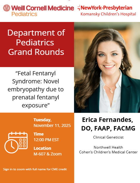 “Fetal Fentanyl Syndrome: Novel embryopathy due to prenatal fentanyl exposure” with Dr. Erica Fernandes